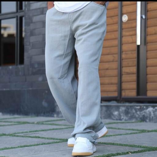 شلوار لینن رنگ سفید محیوب شیک فول بگ مردانه | کیفیت استثنایی قد ۱۱۰ سانت
