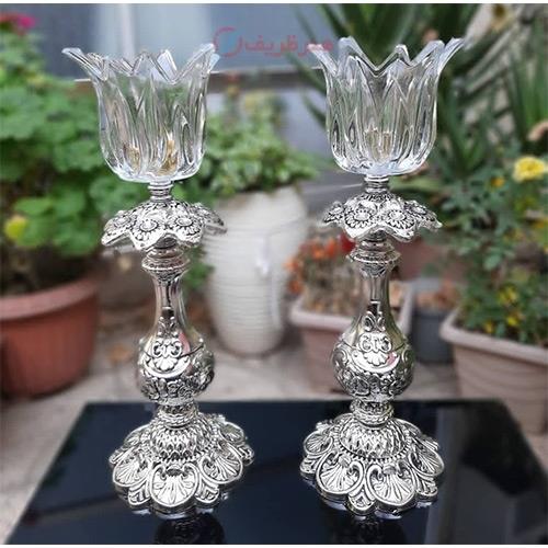 شمعدان تمام آلیاژ نقره ای، زیبا و با کیفیت، رنگ ثابت و تضمینی