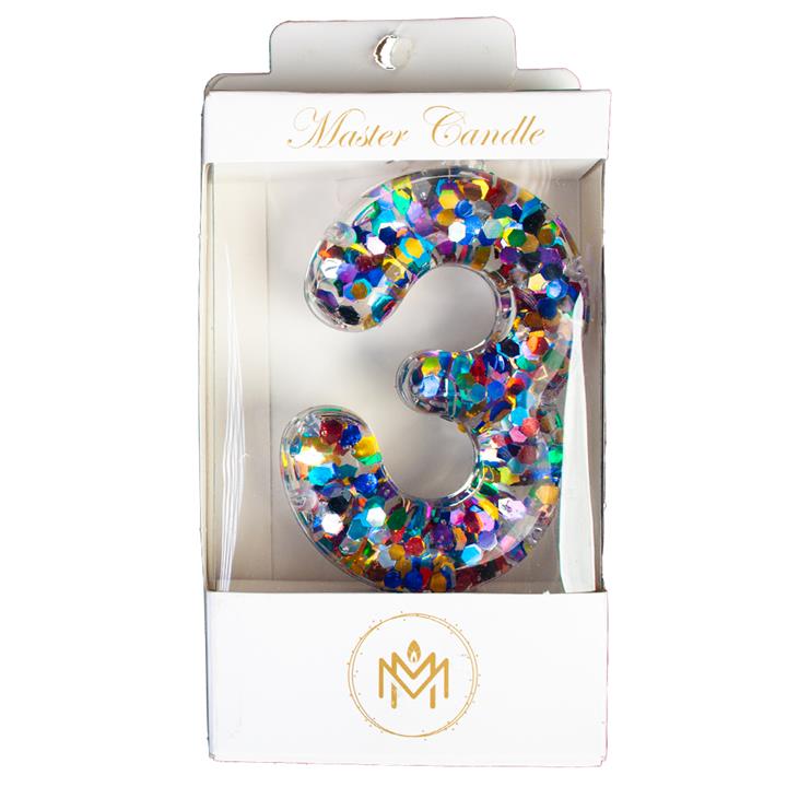 شمع تولد مدل لاکچری پولک دار طرح عدد 3