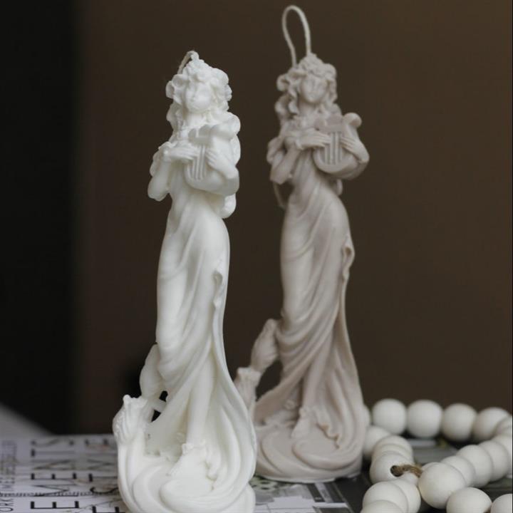 شمع دکوری مدل چنگ نواز | شمع لوکس گیاهی | شمع دختر چنگ نواز