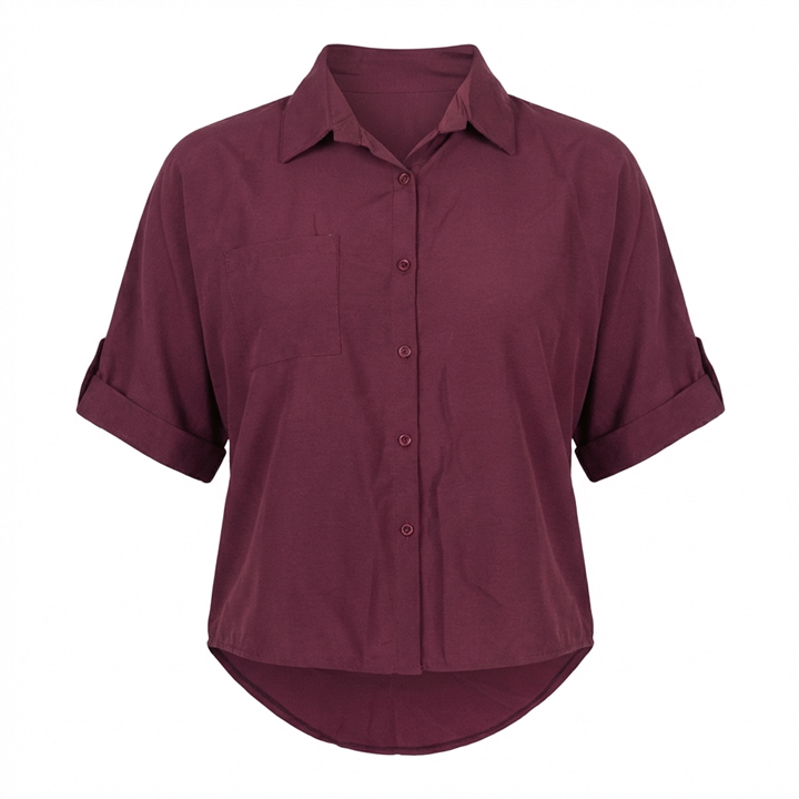 مشخصات فنی شومیز زنانه یقهدار داکرون مدل آستین پاکتی