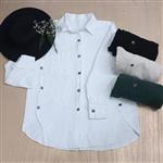 شومیز زنانه خامه دوزی جیب دار جلو دکمه دار آسو بُرنُس
