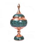 دخل فیروزه کوبی 17 سانتی قندان یا شکلات خوری مس و فیروزه کوبی