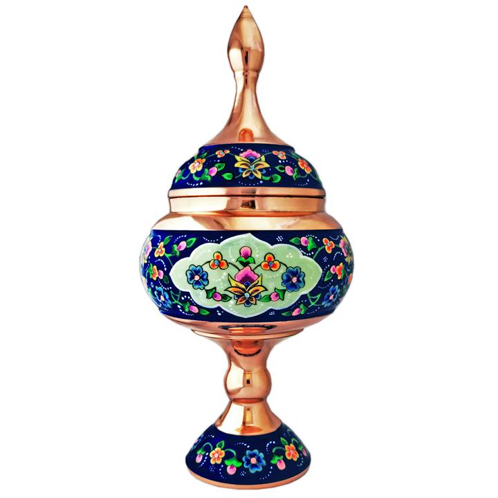 این شکلاتخوری پایه دار مسی که به سبک پرداز نقاشی شده، به دلیل داشتن پوشش محافظ (پلی استر اعلا)، به هیچ عنوان سیاه نمیشود. باید توجه کنید که در صورت استفاده صحیح، ظروف مس و پرداز طول عمر بالایی خواهند داشت. بهتر است در زمان شستن ظروف مس و پرداز، از مواد شوینده قوی استفاده نشود و فقط با دستمال گردگیری نرم آن را تمیز کنید.