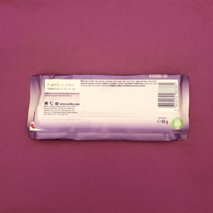 مشخصات فنی شکلات فندق و کرنبری میلکا – milka