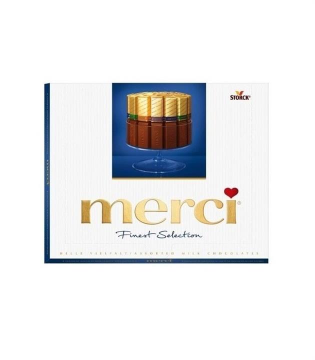 شکلات کادوئی شیری 4 طعم مرسی (merci) 250 گرمی
