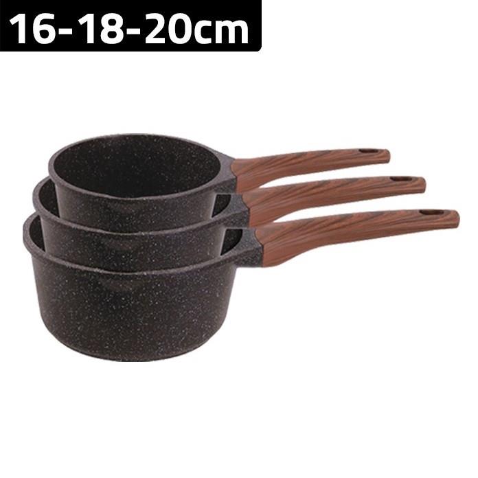 شیرجوش و روغن ریز ، ۳ عددی ، شامل سایزهای 16 و 18 و 20 سانتی متر ،تمام گرانیتی ، داخل نچسب ، ضدخش ، دارای کفی شعله پخش کن ،دسته باکالیت نسوز میباشد. \n• پوشش گرانیتی با ماندگاری بیشتر • قابل شستشو در ماشین ظرفشویی • دستگیره های ارگونومیک • دوام فوق العاده • ساختار داخلی و خارجی آن دارای خواص ضد لک است • مقاوم در برابر دمای بالا • ویژگی ضد خش سطح بالا است .