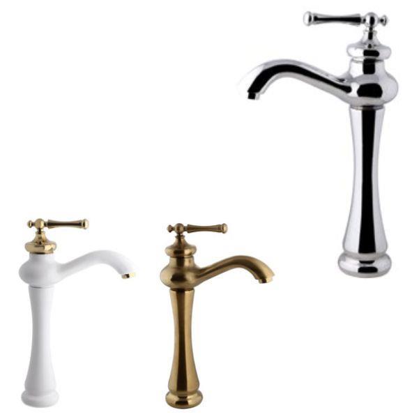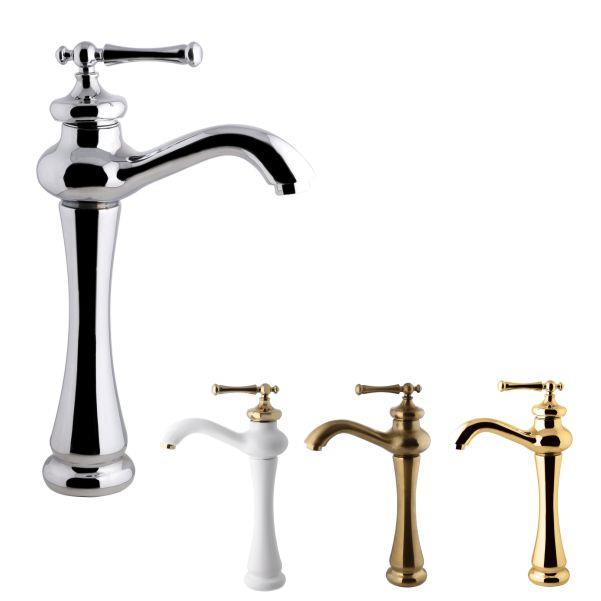 شیر روشویی پایه بلند اوج مدل رامیلا سفید طلایی