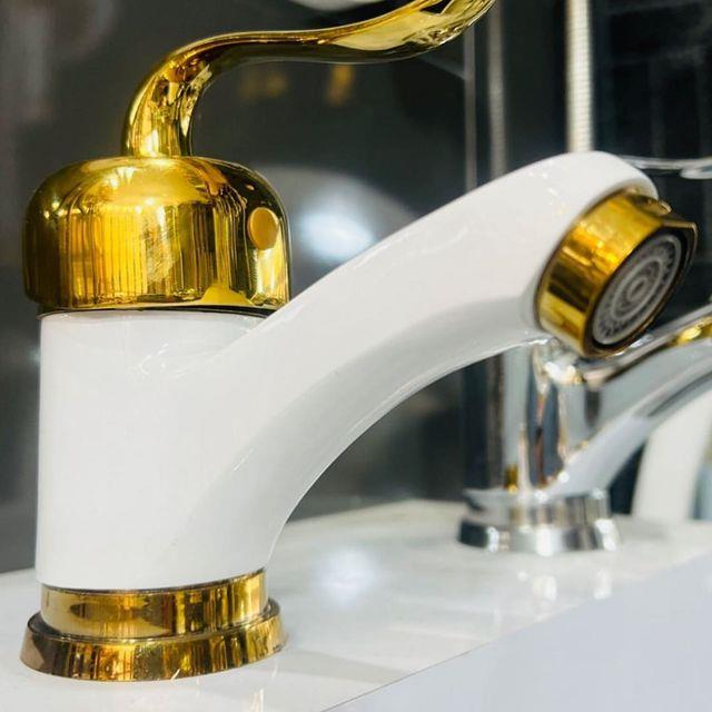 شیر روشویی تکی آیدا مدل قاجاری رنگ سفید طلا