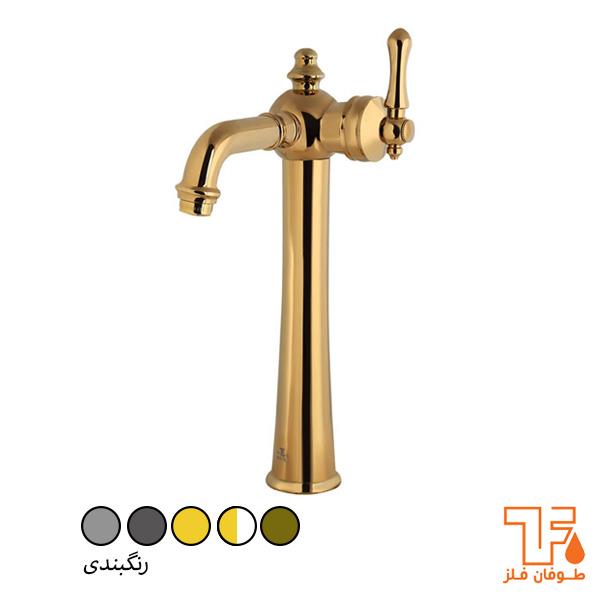شیر روشویی پایه بلند طوفان فلز مدل اسپارک طلایی