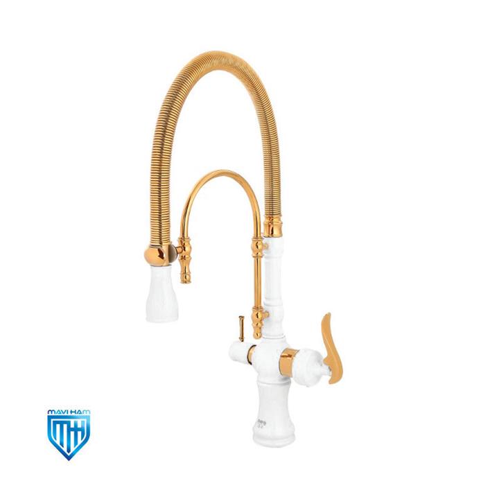 شیر ظرفشویی فنری دومنظوره شیبه مدل ارژن سفید طلایی