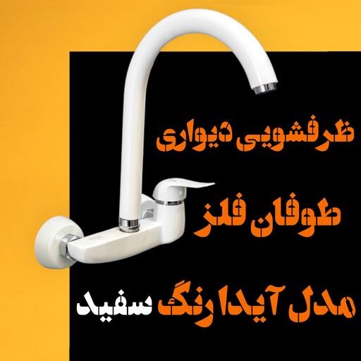 شیر ظرفشویی دیواری طوفان فلز مدل آیدا رنگ سفید
