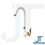 شیر ظرفشویی اهرمی فنری دومنظوره سفید طلایی آریانا (مدل سزار)