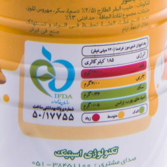 مشخصات فنی شیر موز 1 لیتری عالیس