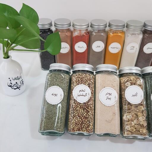 شیشه ادویه سایز 1 مکارتی 14 سانتی چهارگوش