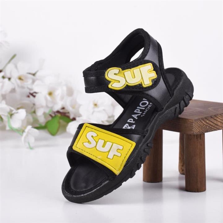 صندل دخترانه نوزادی چسبی کد 334388 رنگ مشکی-زرد سایز 22 تا 2...