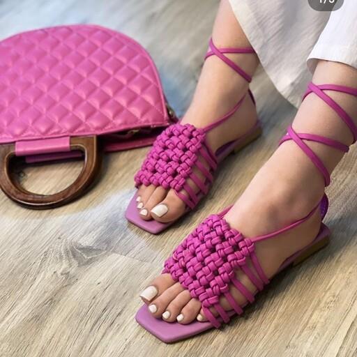 صندل تابستانه بندی گیسبافت ساحلی دخترانه بسیار شیک و خوشپا و...