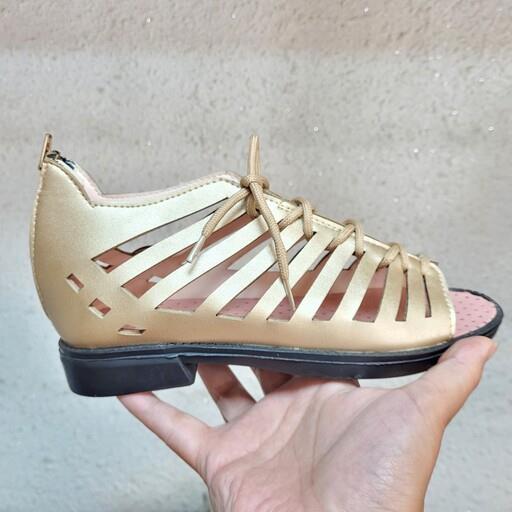 صندل گلادیاتور طلایی پشت زیپ دار دخترانه شیک نرم راحت