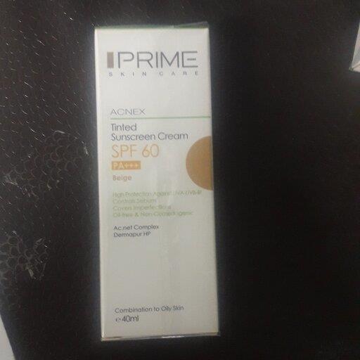 کرم ضد آفتاب رنگی بژ طبیعی پریم مدل Acnex Tinted Natural Beige SPF 60 مناسب پوست مختلط تا چرب حجم 40 میلی لیتر