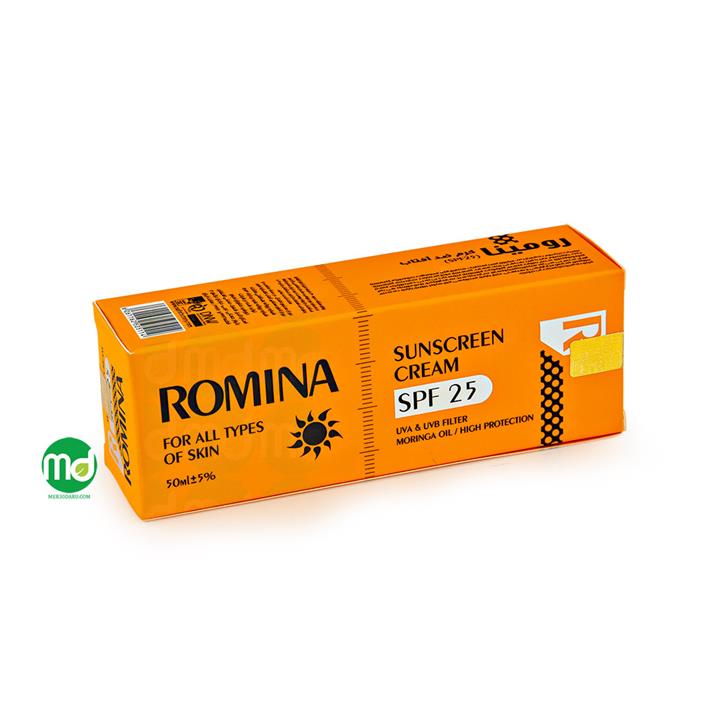 کرم ضد آفتاب SPF25 رومینا مناسب انواع پوست 50 میلی لیتر