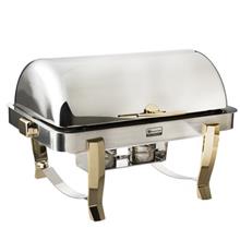 - ظرف سرو شفینگ الکلی مناسب برای پلو - دارای دو تکه مجزا - دارای درب یک برای پوشاندن کل ظرف - دارای دو ظرف وارمر با قابلیت استفاده از الکل - دارای پایههای طلایی و بدنه استیل آینهای - دارای لولاهای مرغوب
