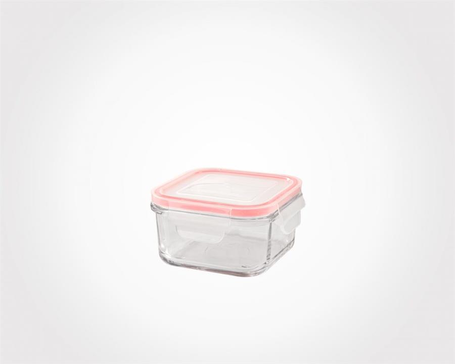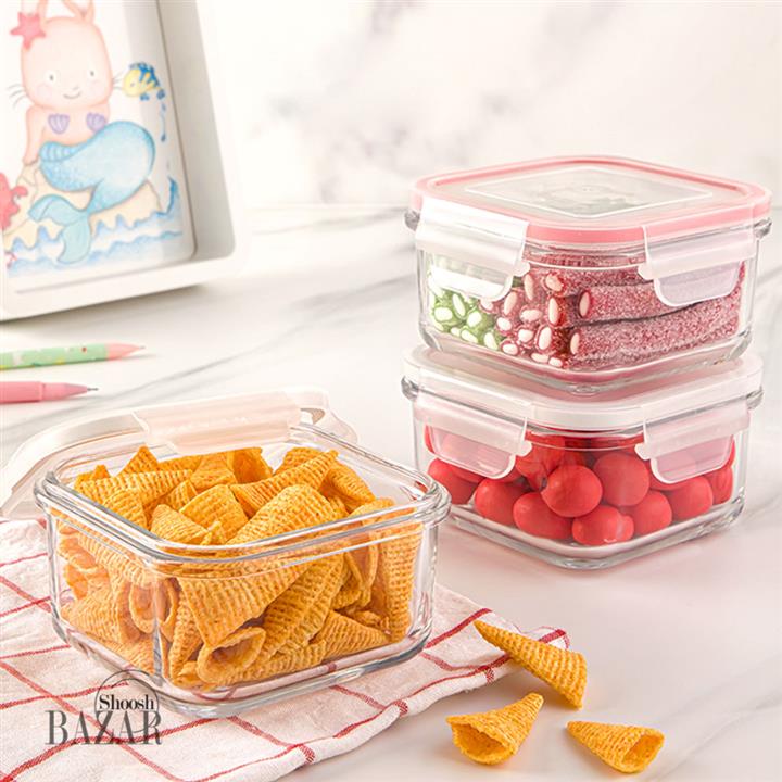 ظرف شیشه ای 440 میلی لیتر مربع دربدار لیمون کد 2014