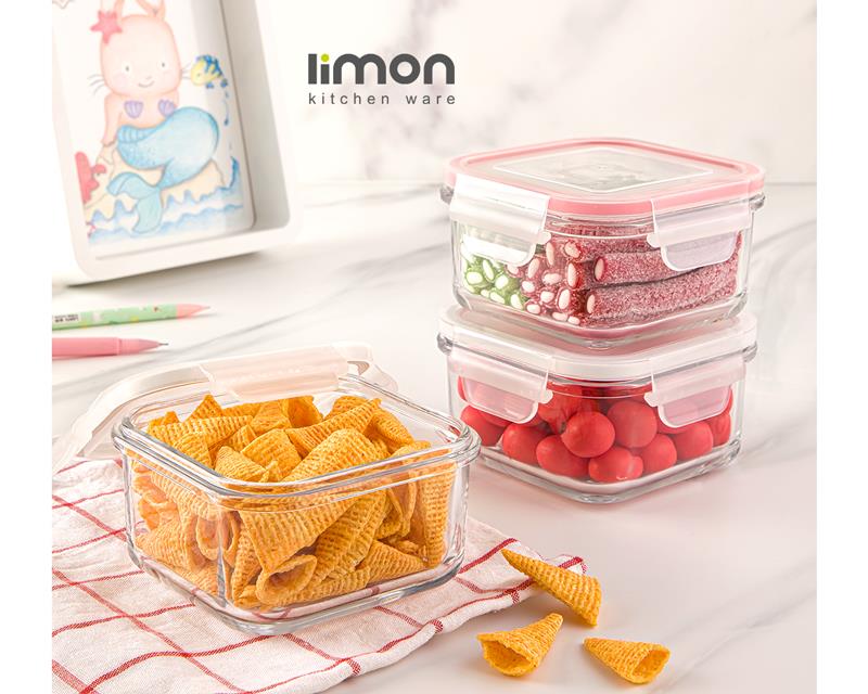 ظرف شیشه ای مربع دربدار 440 میلی لیتری لیمون 2014