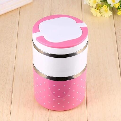 ظرف غذا و لانچ باکس دو طبقه استیل خال خالی