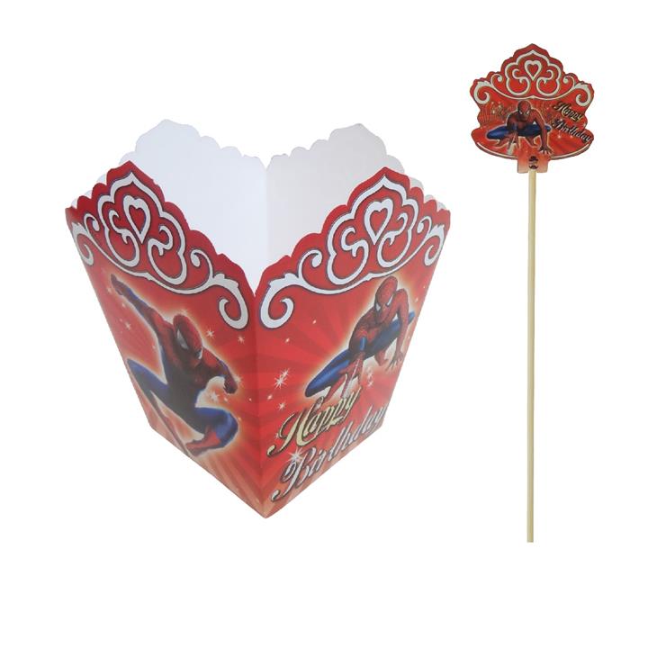 ظرف پاپ کورن مستر تم طرح مرد عنکبوتی بسته 12 عددی به همراه تاپر