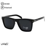 عینک آفتابی دیوید بکهام با فریم رنگ مشکی براق، شکل مربعی و لنز دودی سایه روشن و پلاریزه مدل P7002