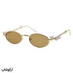 عینک آفتابی زنانه شنل با فریم بیضی، طلایی رنگ، نگین دار و عدسی قهوه ای کم رنگ مدل 30678