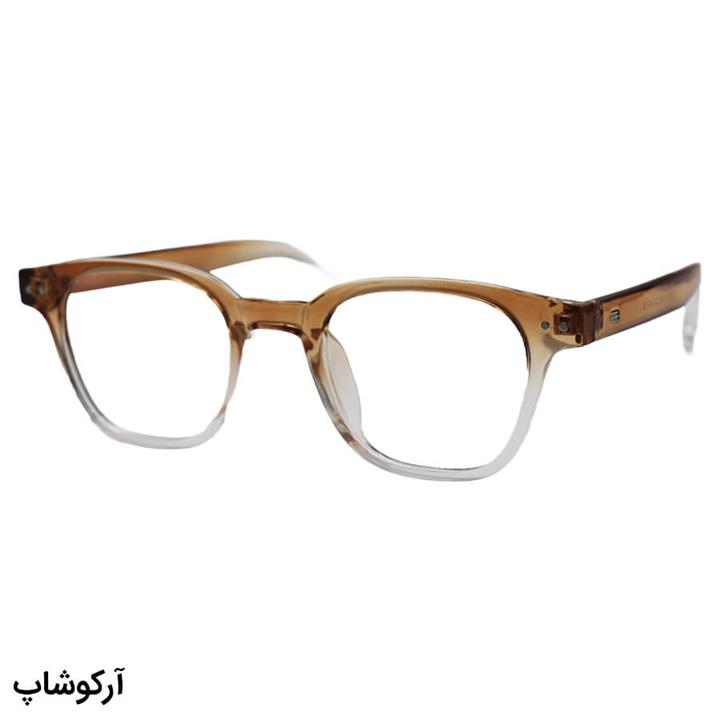 عینک طبی با فریم مربعی شکل، از جنس کائوچو، رنگ عسلی و لنز بلوکات قابل تعویض 203104