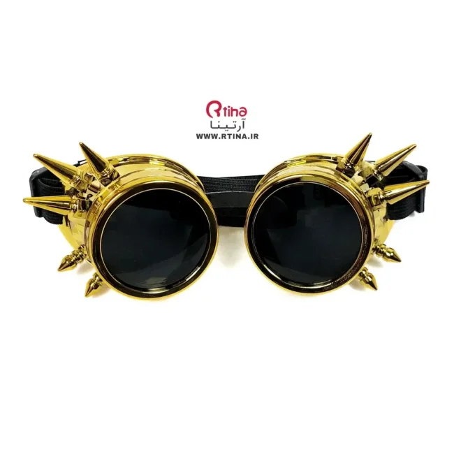 عینک فانتزی مردانه و زنانه اسپایک دار رنگ طلایی متالیک