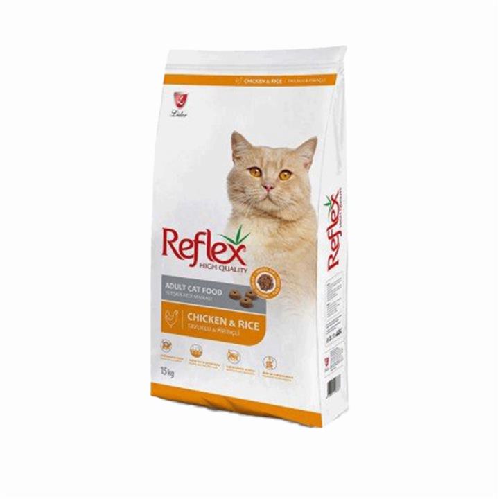 غذای خشک گربه بالغ با طعم مرغ و برنج رفلکس وزن 15 کیلوگرم
