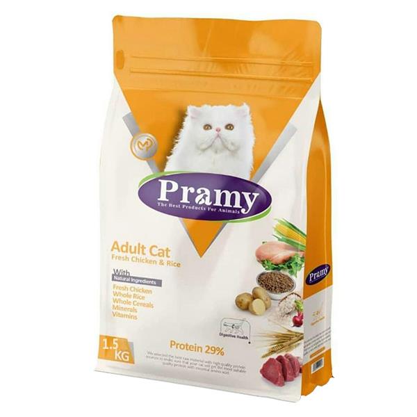 مشخصات فنی غذای خشک گربه پرامی مدل Adult وزن 1.5 کیلوگرم