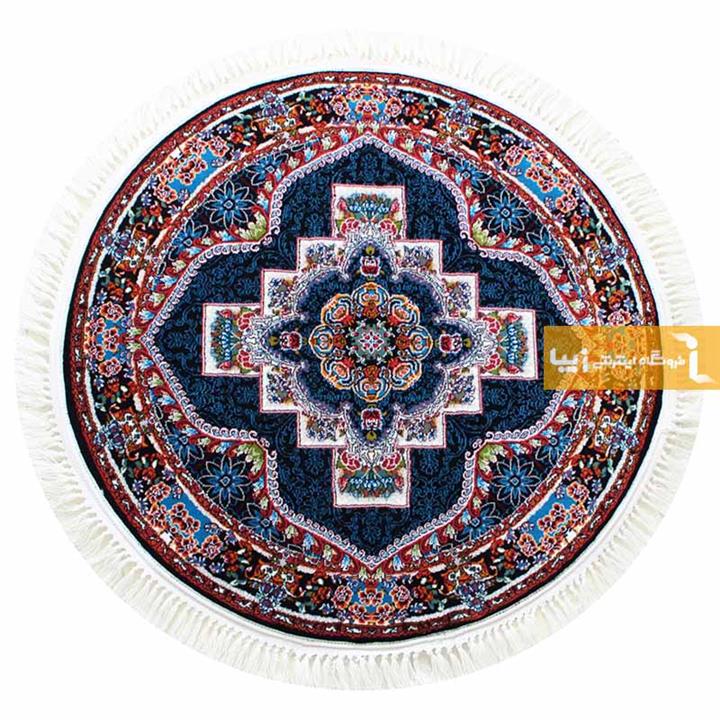 فرش ماشینی مدل گرد طرح ناردون رنگ آبی