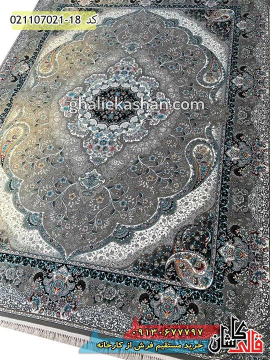 فرش 700 شانه طرح سوگند زمینه نقره ای کاشان