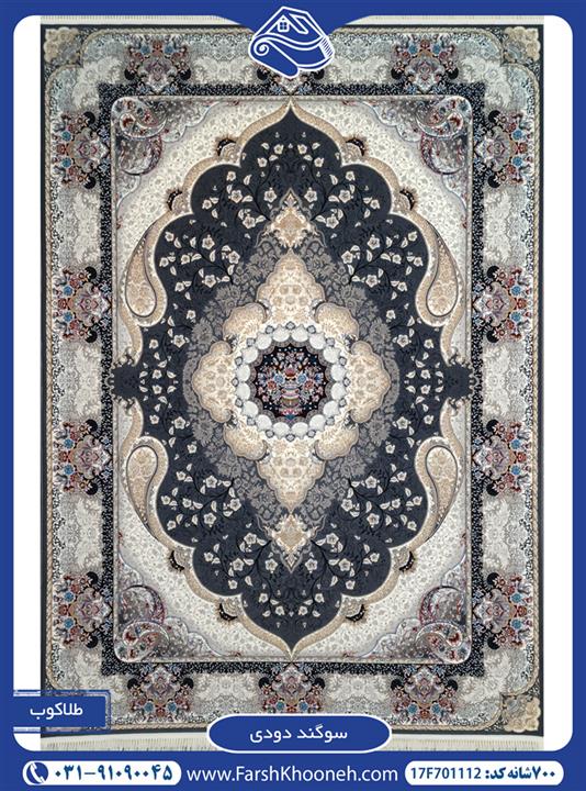 فرش 700 شانه طرح سوگند زمینه دلفینی کاشان