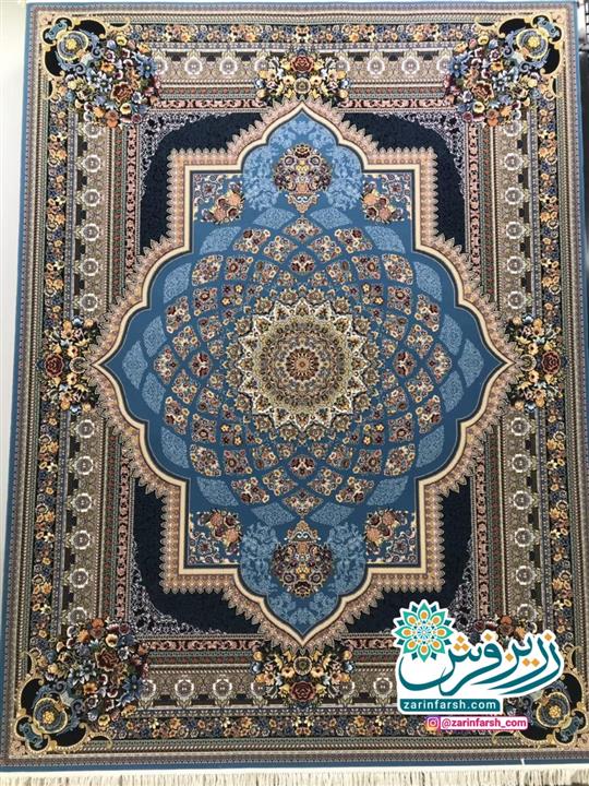 فرش طرح 700 شانه طرح لوکس زمینه سرمه ای کاشان