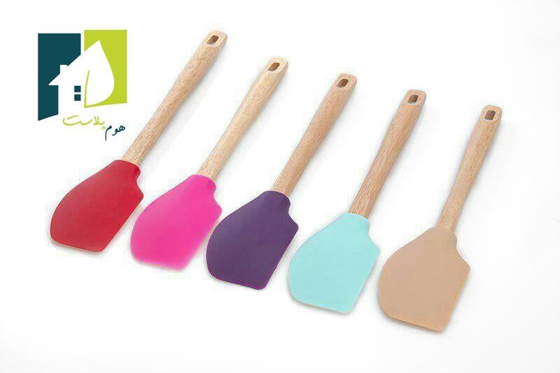 کفگیر و لیسک سیلیکونی دسته چوبی