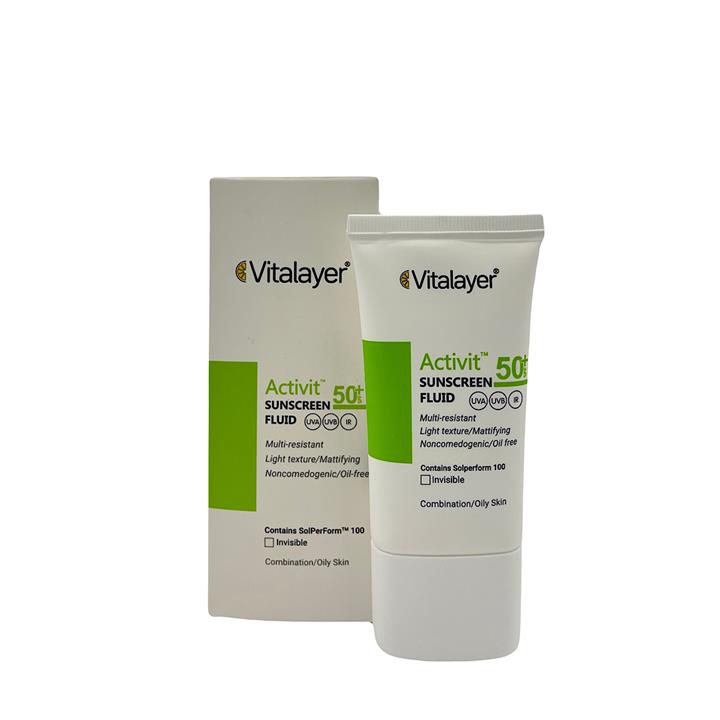 فلوئید ضدآفتاب بیرنگ ویتالیر SPF50 مدل Activit، مناسب پوست...