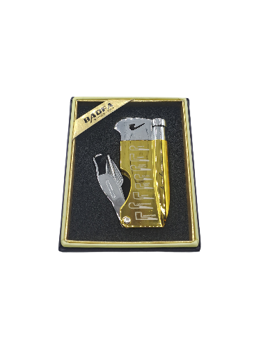 فندک گازی پیپ بائوفا (BAOFA) مدل ابزار دار طلایی نقره ای
