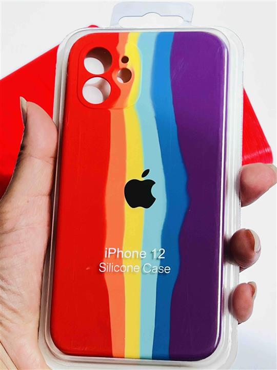 قاب سیلیکونی اورجینال رنگین کمانی محافظ لنزدار iPhone 12