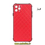 قاب گوشی iPhone 11 Pro Max آیفون طرح چرمی لوزی محافظ لنز دار ایربگ دار کپسولی قرمز کد 150