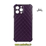 قاب گوشی iPhone 13 Pro Max آیفون طرح چرمی لوزی محافظ لنز دار ایربگ دار کپسولی بنفش کد 64