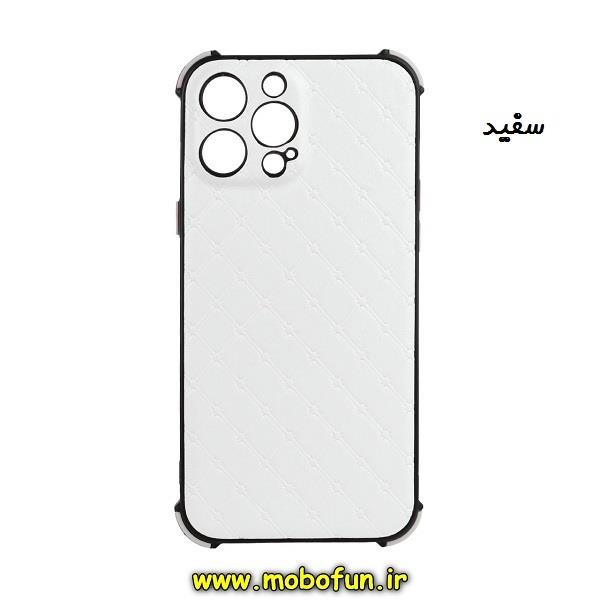 قاب گوشی iPhone 13 Pro Max آیفون طرح چرمی لوزی محافظ لنز دار ایربگ دار کپسولی سفید کد 68