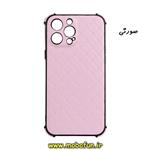 قاب گوشی iPhone 13 Pro Max آیفون طرح چرمی لوزی محافظ لنز دار ایربگ دار کپسولی صورتی کد 66