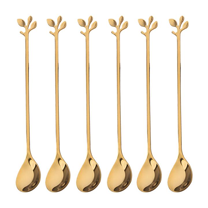 قاشق شربت خوری طرح برگ طلایی 6 عددی