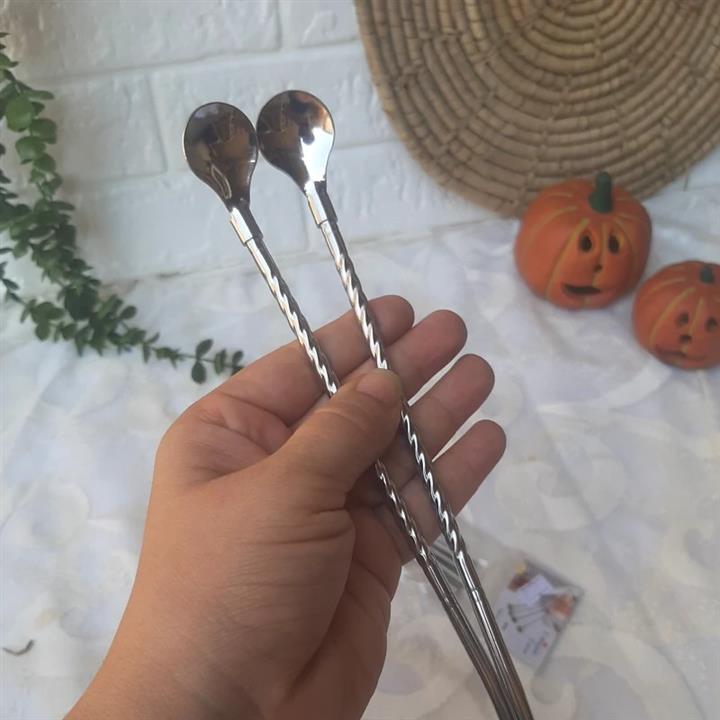 قاشق شربت خوری مدل پیچ نی دار طرح گل بسته 6 عددی به همراه بر...