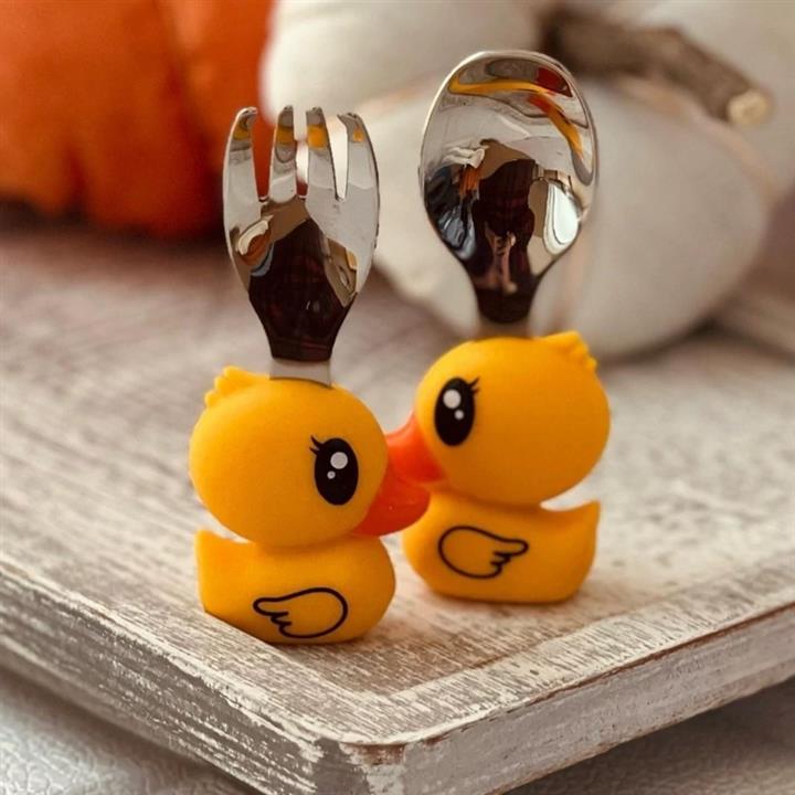 قاشق چنگال کودک دسته سیلیکونی طرح اردک
